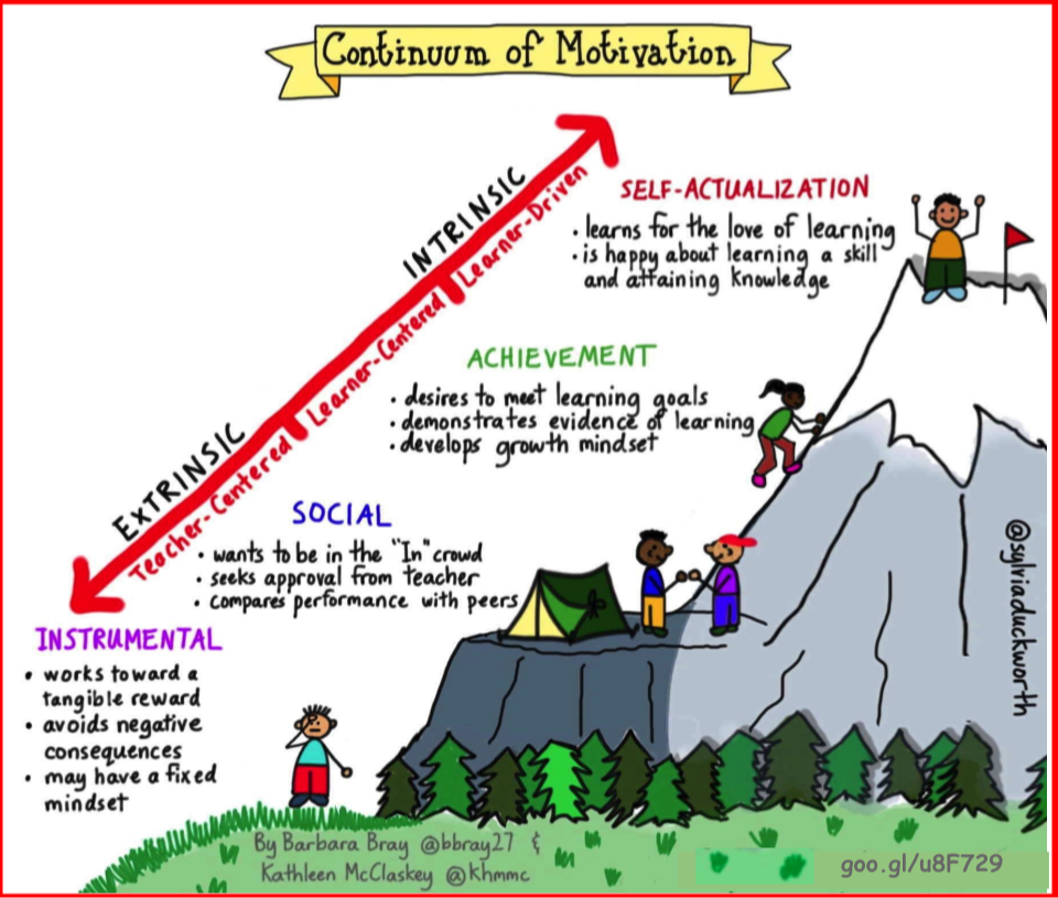 Intrinsic, self-actualized motivation is often presented as a form of enlightmentment. In Barbara's illustration, it's literally drawn as ascending to the top of a mountain.